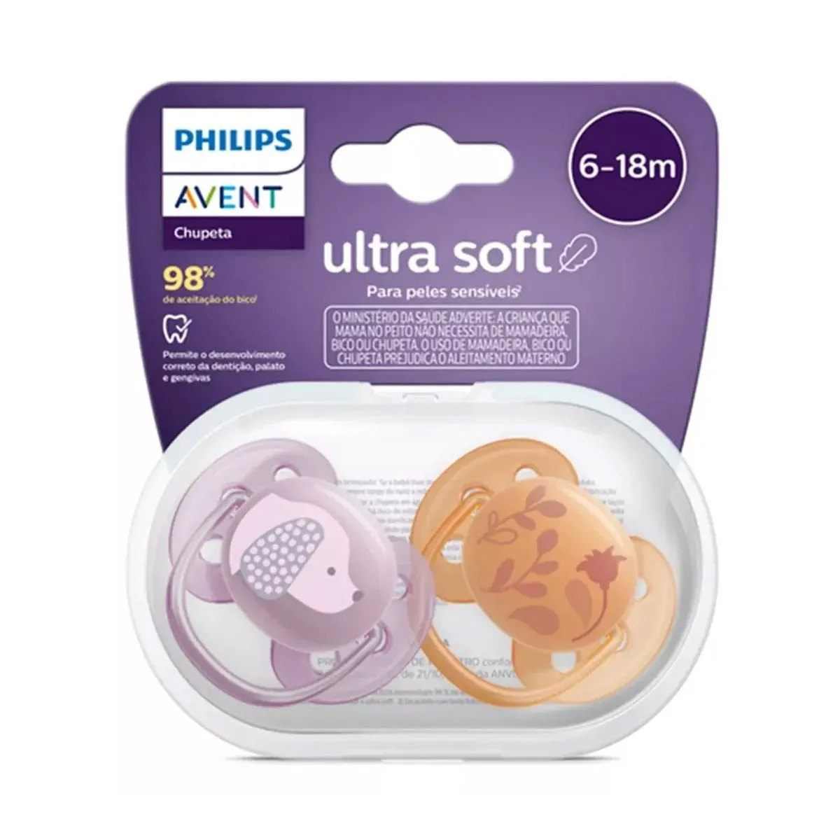 Chupeta Avent Ultra Soft Dupla/Decorada 6-18M Laranja/Rosa – Philips