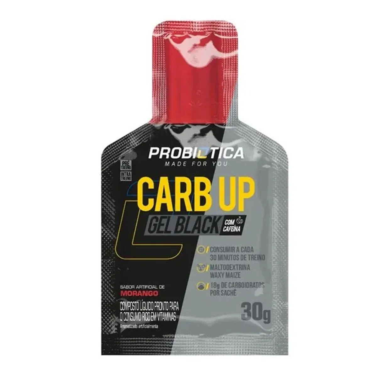 • Carb-up Gel Black Probiótica Sabor Morango Sachê Com 1 Unidade 30g