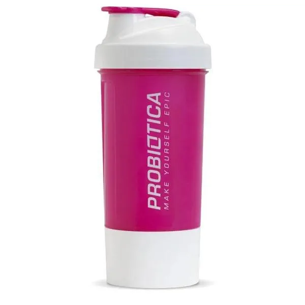 Coqueteleira 2 Compartimentos 700ml Rosa/Branca Probiótica