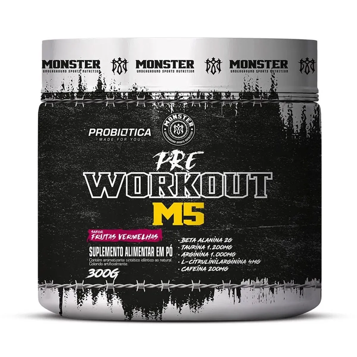 Promoção!Pré Work Out M5 Sabor Frutas Vermelhas Com 300G Probiótica
