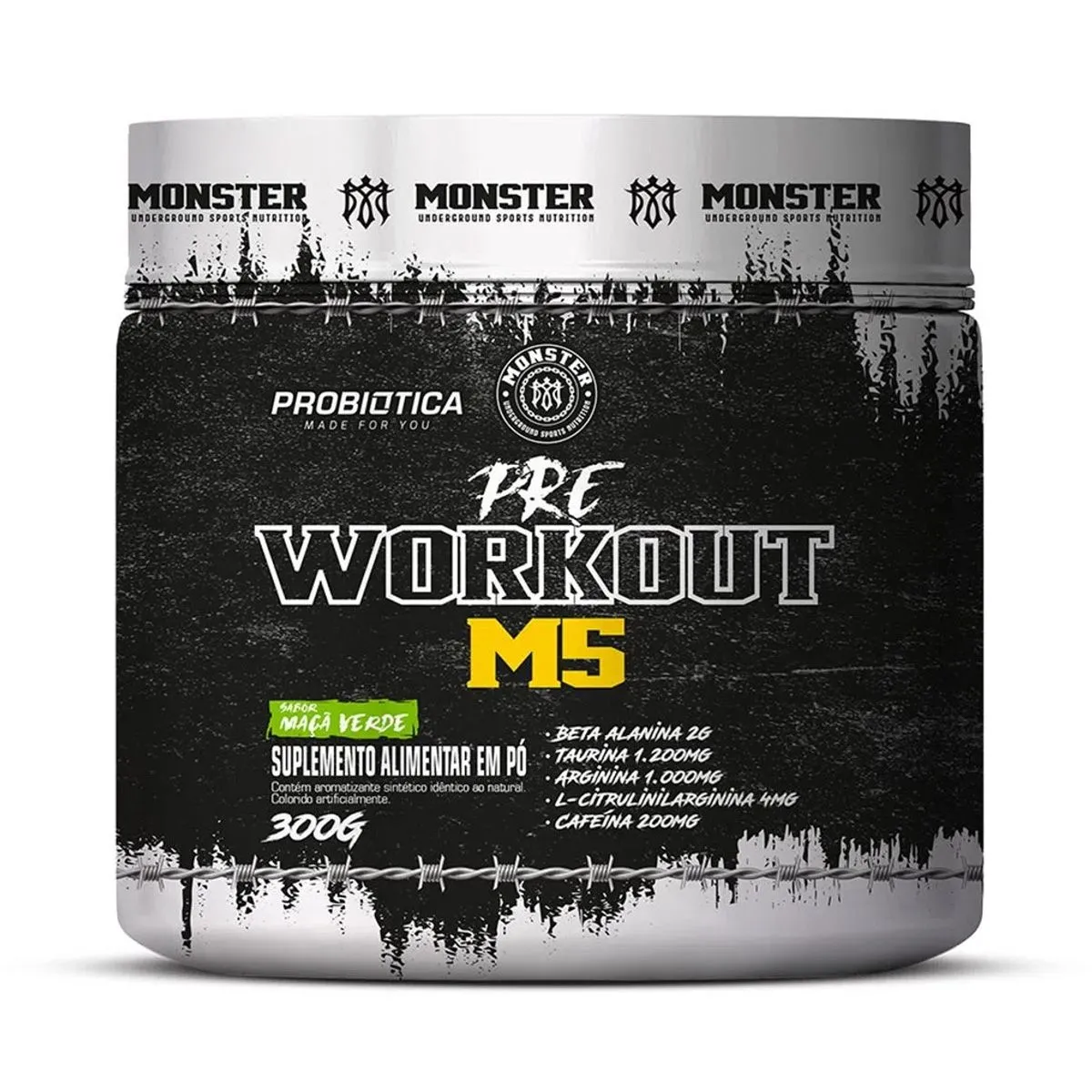 Promoção!Pré Work Out M5 Sabor Maça Verde Com 300G Probiótica