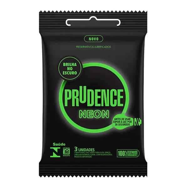 Preservativo Prudence Neon Lubrificado 3 Unidades