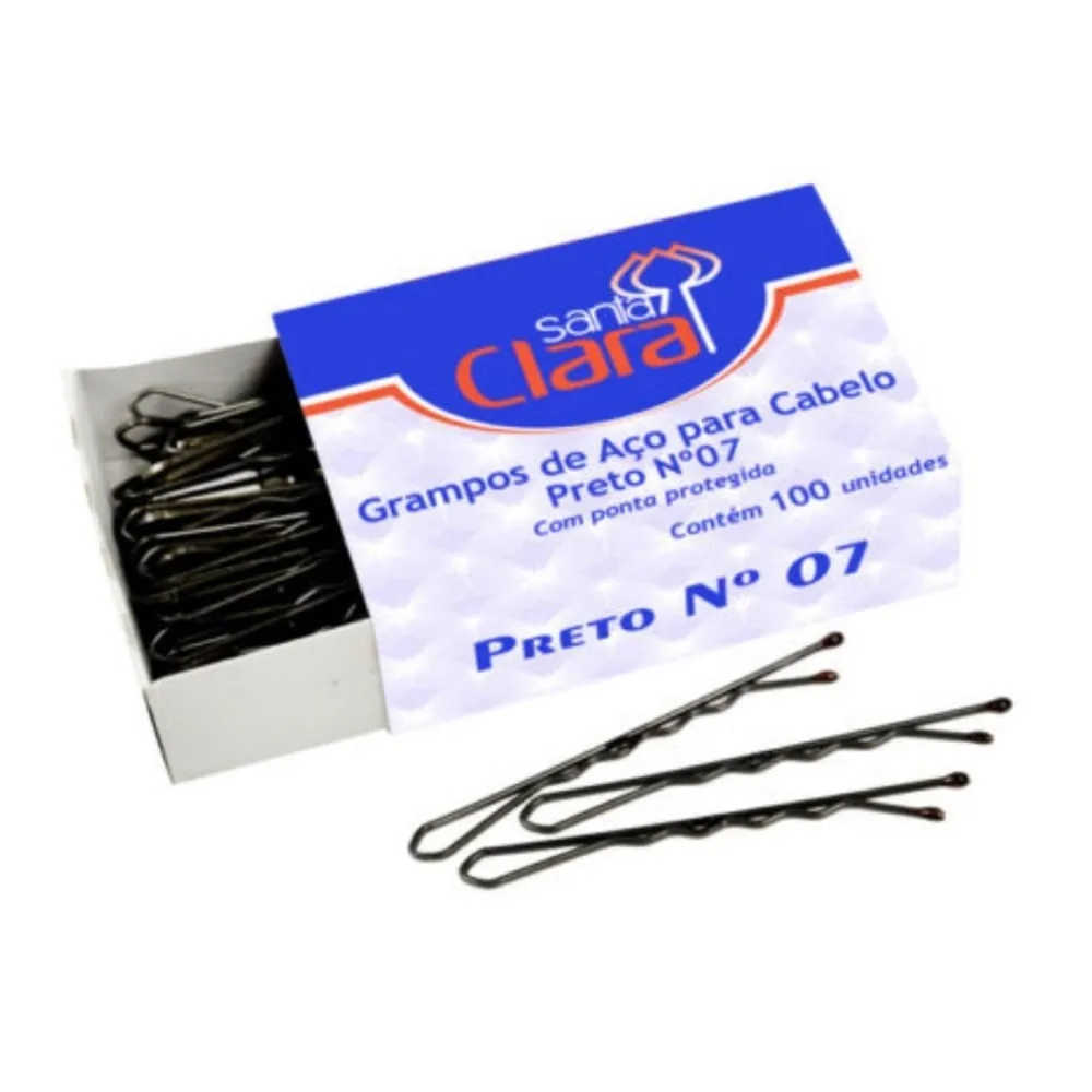 Grampo para Cabelo Santa Clara Aço Preto N°7 C/100 Unidades