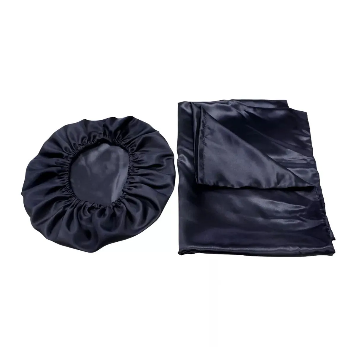 Kit Touca e Fronha de Cetim Lisa Anti-Frizz Preto Santa Clara