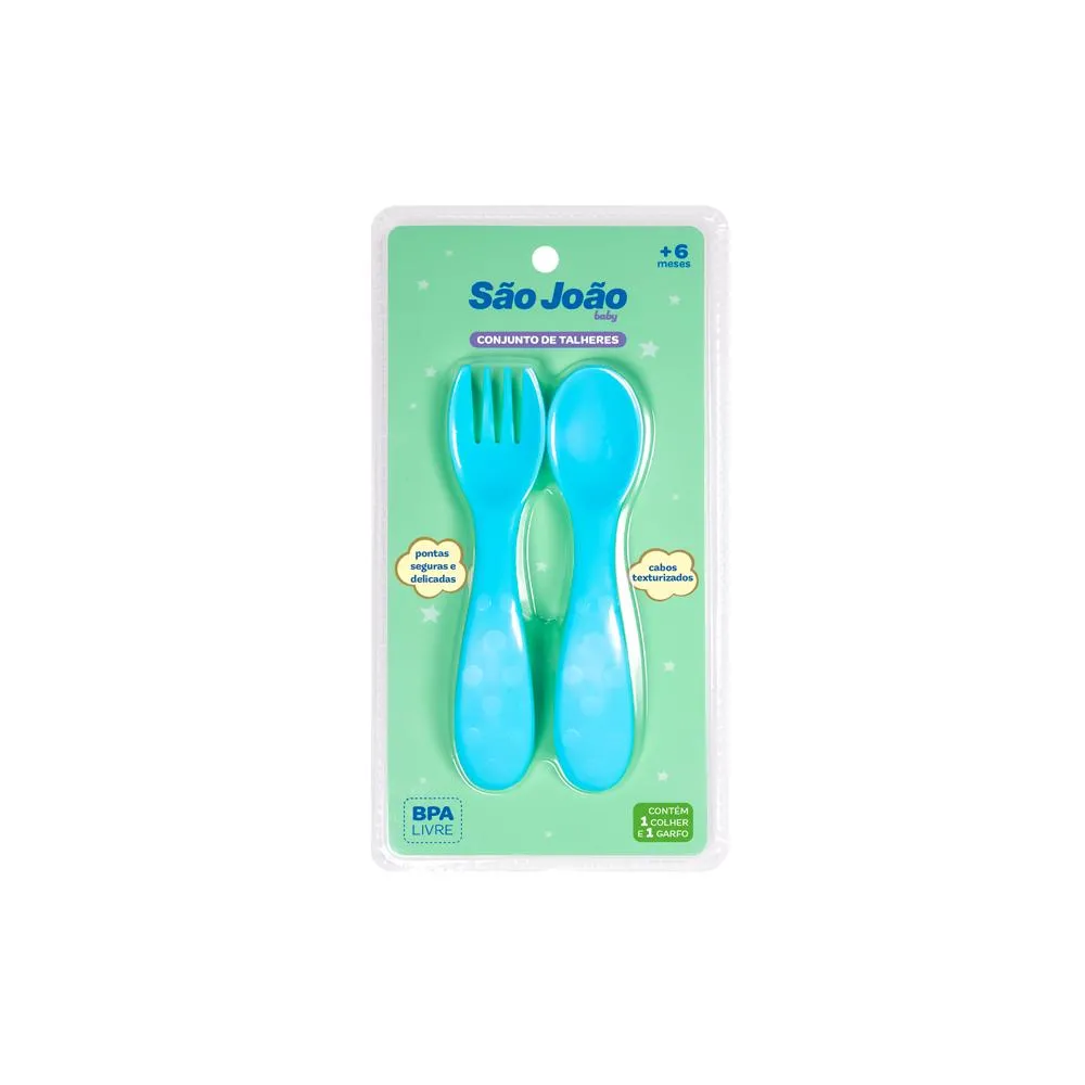Promoção!Conjunto São João Baby Prato + Talheres Azul